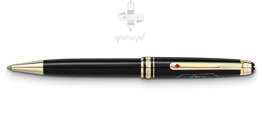Długopis Montblanc Meisterstuck Classique Around The World in 80 Days II jest częścią drugiej odsłony kolekcji inspirowanej słynną powieścią przygodową Juliusza Verne'a. Pierwsza zaprojektowana została w kolorze granatu ze srebrnymi wykończeniami, najnowsza - zachwyca odcieniem antracytu i elementami wykończenia o złotej barwie. Edycja ta nawiązuje do drugiego etapu podróży głównego bohatera, z Bombaju do Jokohamy. Prezentowany długopis Montblanc Meisterstuck Classique został wykonany ze szlachetnej żywicy i wyróżnia się minimalistycznym designem, gdzie jedynym elementem ozdobnym jest grawerunek majestatycznego słonia - środka transportu i zarazem symbolu szczęścia. Klips z kolei przedstawia lakierowany na czerwono symbol karciany, nawiązując do zakładu pana Fogg'a, że podróż trwać będzie dokładnie 80 dni i ani dnia więcej. Długopis jest elegancki, a dzięki prostocie formy i harmonijnym liniom - klasyczny i ponadczasowy. Całość stanowi piękne dopełnienie kolekcji piór wiecznych i piór kulkowych.