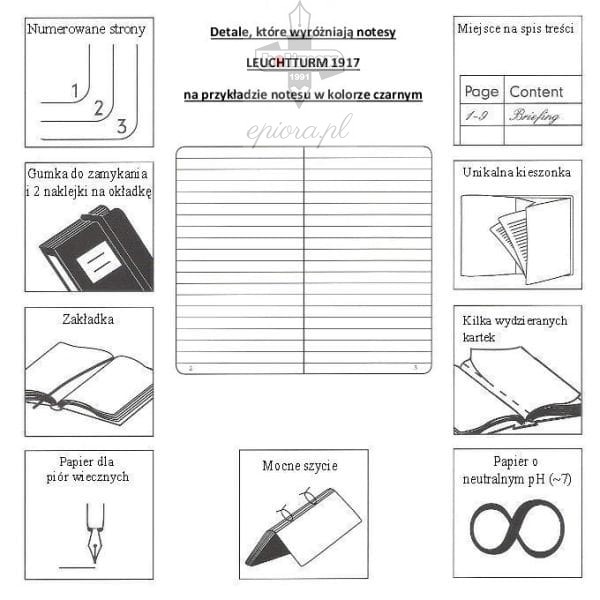 - najwyższej jakości bezkwasowy papier o gramaturze 80 g/m2, idealny do pisania piórem wiecznym,