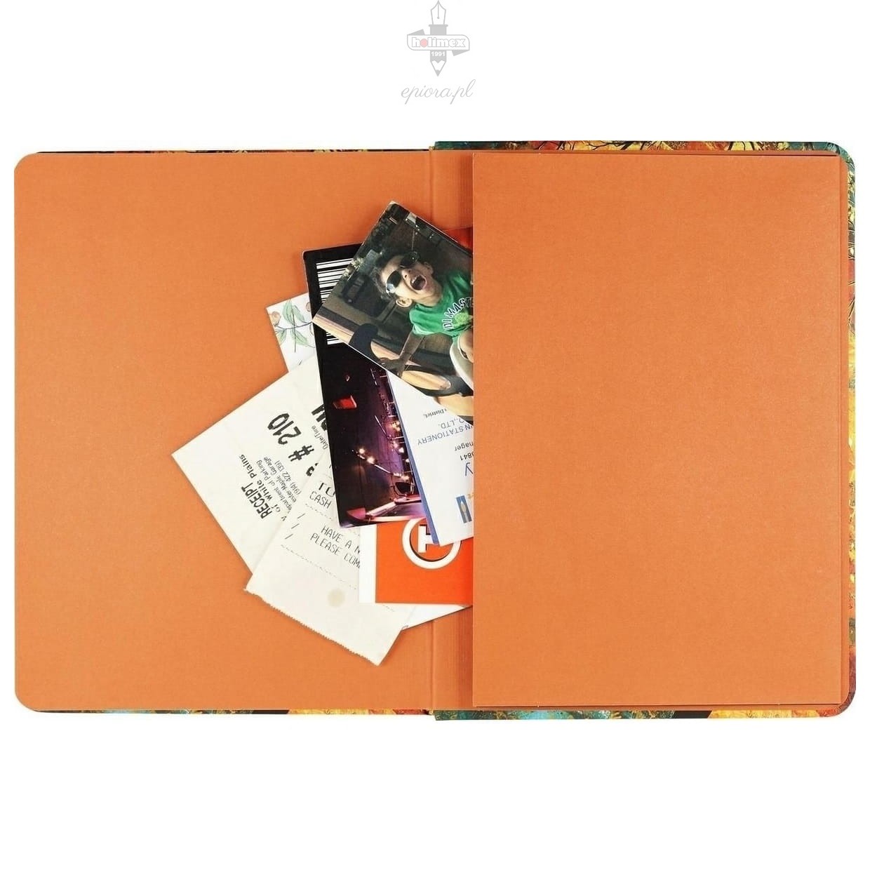 Notatnik Peter Pauper Press Midi Las marzeń przyciąga wzrok swoją lekko tajemniczą, lecz inspirującą okładką. Kolory subtelnie przenikają się, tworząc harmonijną mieszankę głębokich odcieni zieleni, złota i brązu, imitując tym jesienne liście. Amerykański producent tworzy notesy wysokiej jakości, zwracając szczególną uwagę na doskonałe parametry papieru. Prezentowany model posiada kartki w kremowym kolorze, które zadrukowane zostały obustronnie w szare linie - dla ułatwienia sporządzania notatek. Dodatkowo ich gramatura 120 g/m2 perfekcyjnie współgra z atramentami. Warto wspomnieć iż notatnik Peter Pauper Press ma wiele przemyślanych rozwiązań: wewnątrz okładki umieszczona jest koperta na luźne karteczki lub bilety, a całość oplata elastyczna gumka gwarantując bezpieczeństwo. Notatnik idealnie sprawdzi się w roli zeszytu, pamiętnika lub codziennego dziennika, a dzięki swojemu kompaktowemu rozmiarowi 15,9 x 21 cm będzie perfekcyjnym towarzyszem zarówno do pracy, jak i do szkoły czy na uczelnię.
