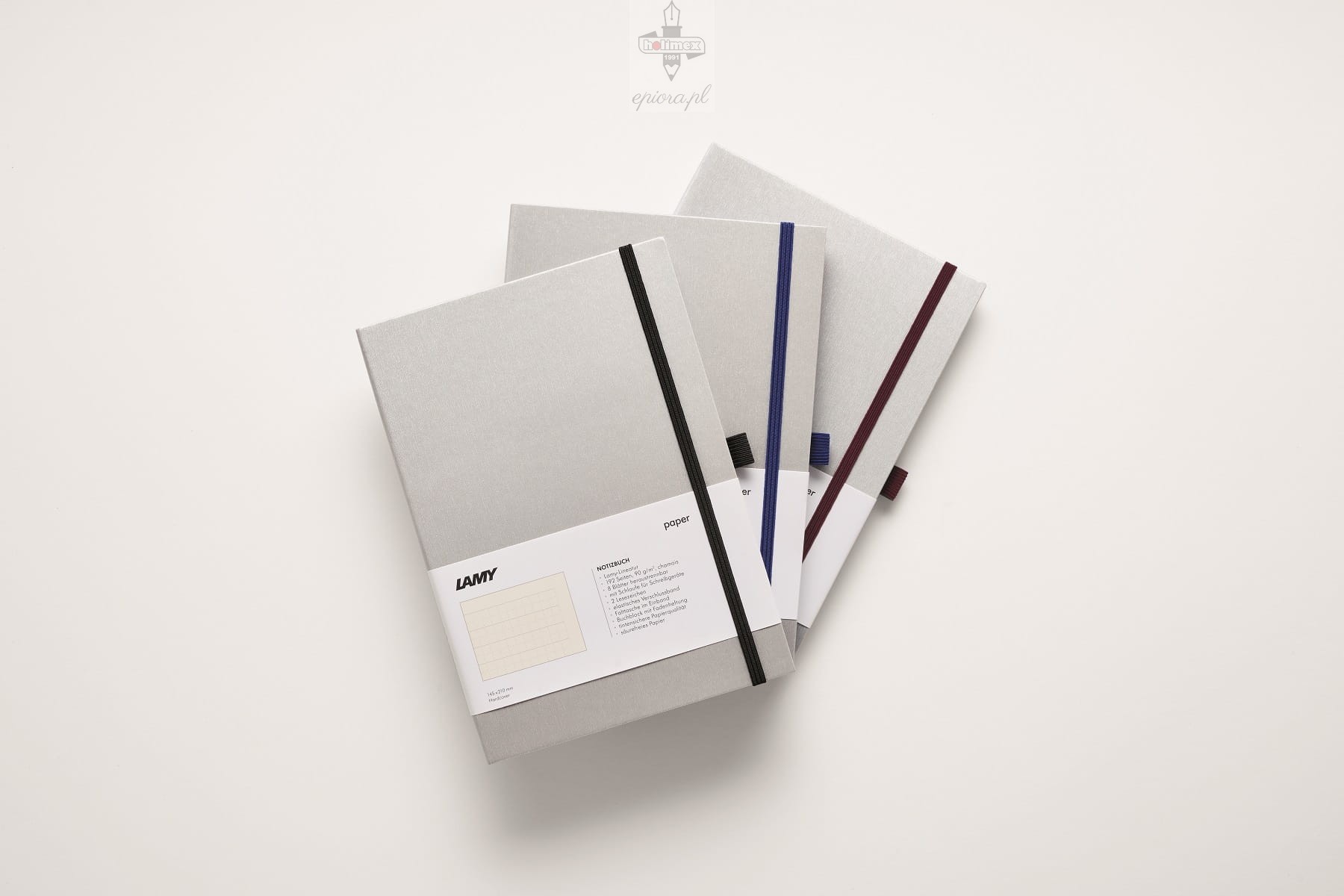 Notes Lamy w twardej oprawie srebrno-czarny A5 to idealne dopełnienie produktów piśmienniczych Lamy, bezkompromisowo stawiające najwyższą jakość na pierwszym miejscu. Notes w formacie A5 - (145 x 210 mm) o 192 nieprzepuszczających atramentu stronach papieru o unikalnej liniaturze- połączeniu kropek, kratki i linii. Twarda okładka o metalicznej barwie i lekkiej fakturze w połączeniu z czarnymi brzegami stron nadają notesowi elegancji i oryginalności, a wygodna szlufka na długopis, gumka zabezpieczająca notes przed otwarciem oraz dwie wstążki zakładki uprzyjemniają korzystanie z notesu.