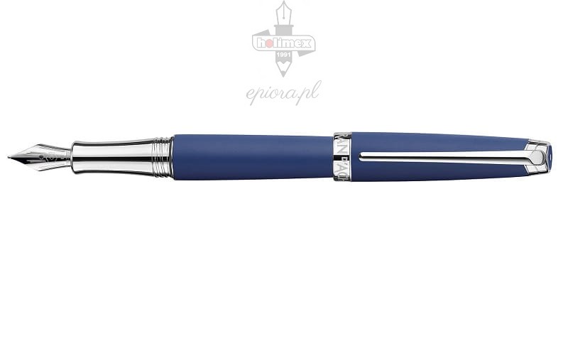 Pióro wieczne Caran d'Ache Leman Blue Matt jest częścią kolekcji inspirowanej pięknem i bogactwem barw szwajcarskiej przyrody. Inspiracją dla tego modelu stał się blask księżyca, odbijającego się w wodach Jeziora Genewskiego. Kolor granatowy korpusu i skuwki rozświetlają platerowane srebrem wykończenia oraz pokryta rodem stalówka, która wykonana została z 18-karatowego złota. Pióro wyprodukowano w warsztatach Caran d'Ache w Genewie. W zestawie znajduje się konwerter, który można zastąpić standardowymi, międzynarodowymi nabojami - dwa w kolorze niebieskim również są częścią zestawu.