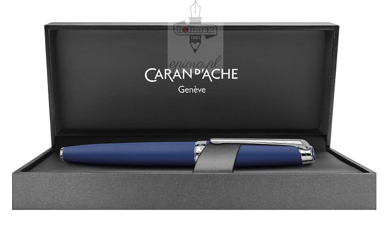 Pióro wieczne Caran d'Ache Leman Blue Matt opakowane jest w eleganckie firmowe etui.