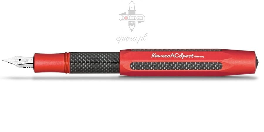 Pióro wieczne Kaweco AC Sport czerwone to bardzo wyrazista kolorystycznie propozycja w niepowtarzalnej, bo stworzonej z aluminium i włókna węglowego kolekcji. W prezentowanym modelu czerwień doskonale kontrastuje z antracytowym odcieniem karbonu tworząc połączenie przywodzące na myśl wykończenie sportowych samochodów. Lekkie, a zarazem bardzo wytrzymałe pióro wieczne posiada charakterystyczną ośmioboczną skuwkę z grawerem Kaweco. Na koronie wtopione jest logo niemieckiej marki. Stalówka wykonana jest ze stali szlachetnej. W piórze wiecznym można stosować zarówno standardowe naboje atramentowe oraz zamiennie tłoczek Kaweco Squeeze lub Kaweco Mini, do dokupienia oddzielnie. W zestawie znajduje się jeden niebieski nabój startowy.