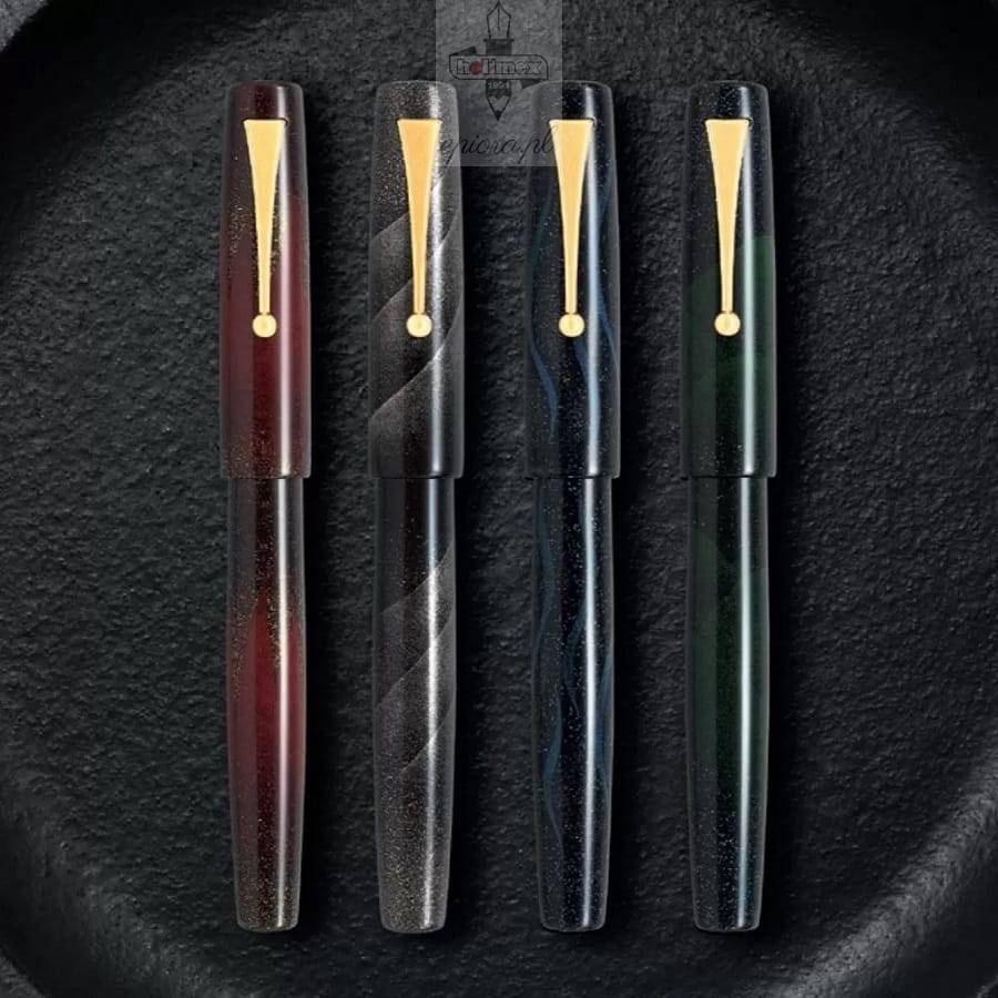 Pióro wieczne Namiki Aya Akatsuki Daybreak wraz z trzema wyjątkowymi modelami tworzy kolekcję, która nazwę swą wzięła od japońskiego słowa oznaczającego kolorowe światło. Niewątpliwie jest to edycja przykuwająca wzrok dzięki kunsztowi wykonania, pięknym kolorom i wspomnianej świetlistości, osiągniętej za pomocą tradycyjnej techniki nakładania lakieru, praktykowanej w Japonii przez najwybitniejszych twórców instrumentów piśmiennych. Grupa rzemieślników Kokkokai stworzyła pióro wieczne zachwycające abstrakcyjnymi wzorami, symbolizującymi czarujący świat sztuki Kraju Kwitnącej Wiśni. Prezentowany model Namiki Aya Akatsuki poświęcony został ciemnej i tajemniczej godzinie dnia tuż przed wschodem słońca, która prowadzi jednak do przebudzenia się. Słowo akatsuki oznacza również spełnienie życzenia, co podkreśla jego magię. To ekskluzywne i wyjątkowe pióro wieczne wykonane zostało techniką Togidashi Maki-e przy użyciu złotego proszku. Dzięki niej korpus i skuwka wydają się lśnić, a powierzchnia staje się niemal aksamitna w dotyku. Dopełnienie stanowi niezwykła stalówka ozdobiona wizerunkiem góry Fuji, wykonana z 18-karatowego złota.