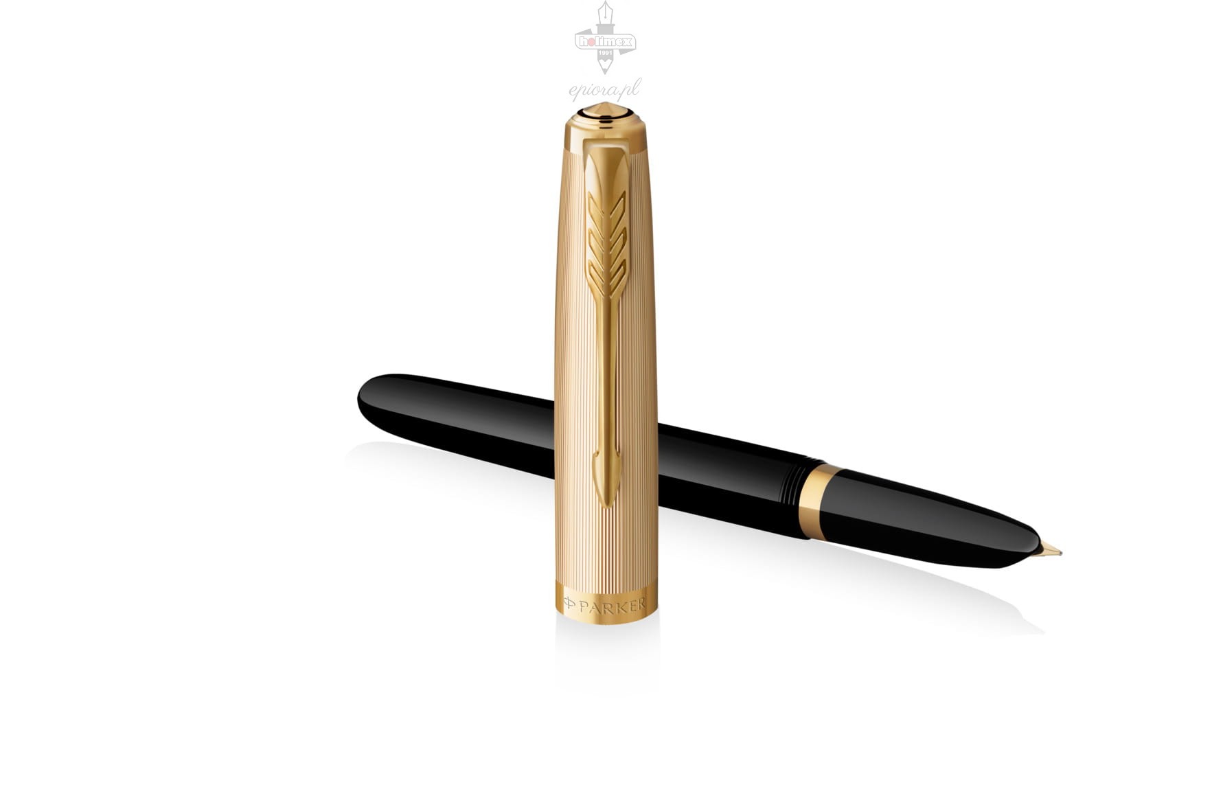 Pióro wieczne Parker 51 Deluxe Black GT zachwyca dyskretną elegancją i ponadczasowym, klasycznym designem. Jego opływowy kształt sprawia, że doskonale leży w dłoni, zapewniając niesamowity komfort pisania. Wiele cech wyróżnia model Parker 51 Deluxe spośród innych instrumentów piśmiennych dostępnych na rynku, jednak zdecydowanie najbardziej oryginalną i ikoniczną z nich jest schowana w nasadce stalówka wykonana z 18-karatowego złota. Materiały użyte do produkcji każdego z elementów pióra zostały dobrane z ogromną dbałością o jakość - drogocenna żywica, cyzelowana nasadka oraz złocone pierścienie, a następnie ręcznie złożone przez najlepszych fachowców marki. Znakiem rozpoznawczym marki Parker jest bez wątpienia wojownicza strzała, która zdobi skuwkę pióra wiecznego, korespondując z kolorystyką i kształtem tego niezwykłego instrumentu piśmiennego. Parker 51 po raz pierwszy pojawił się w sprzedaży w 1947 roku i od tego czasu zmienił oblicze rynku piór wiecznych na zawsze. Niemal 60 lat później marka powraca do przełomowej kolekcji, tworząc pióro wieczne nawiązujące kolorystyką oraz kształtem do produktów określanych niegdyś mianem "najbardziej pożądanych na świecie". W zestawie do pióra dołączony jest nabój startowy, istnieje jednak możliwość zakupu konwertera do piór z kolekcji Deluxe, aby móc pisać atramentem.